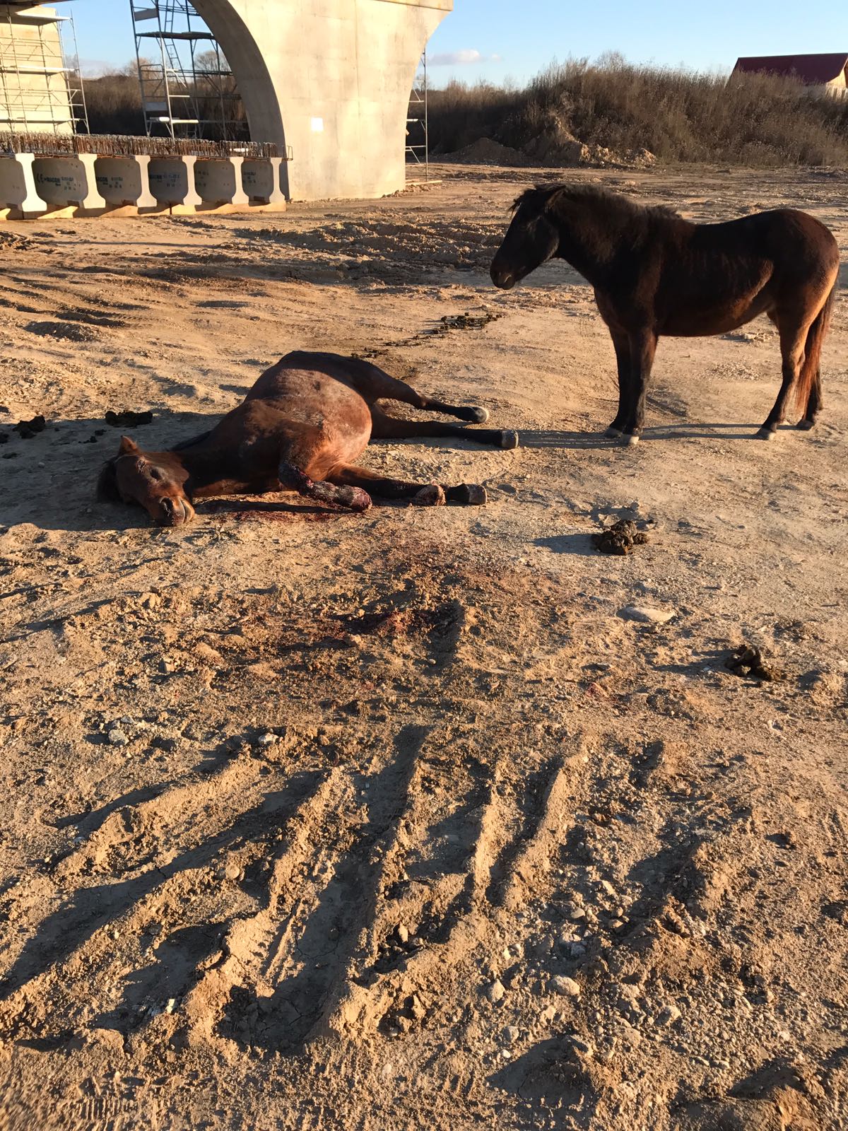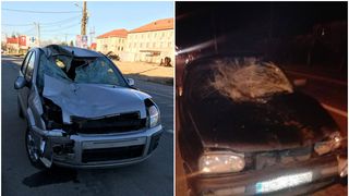 In urma impactului, animalul a fost aruncat pe marginea soselei si are rani grave, iar cele doua masini au fost avariate. Una dintre masini a fost distrusa in totalitate.