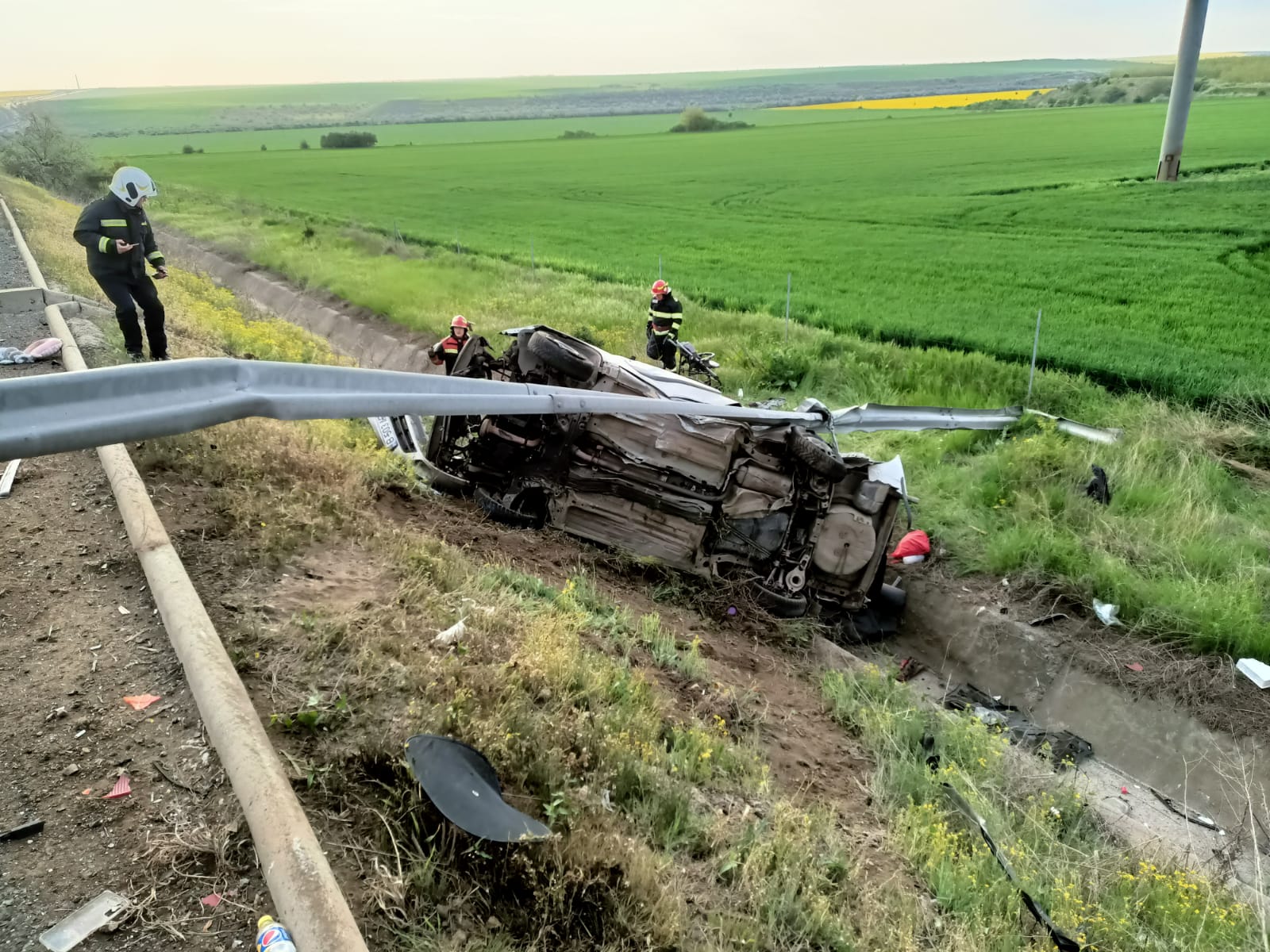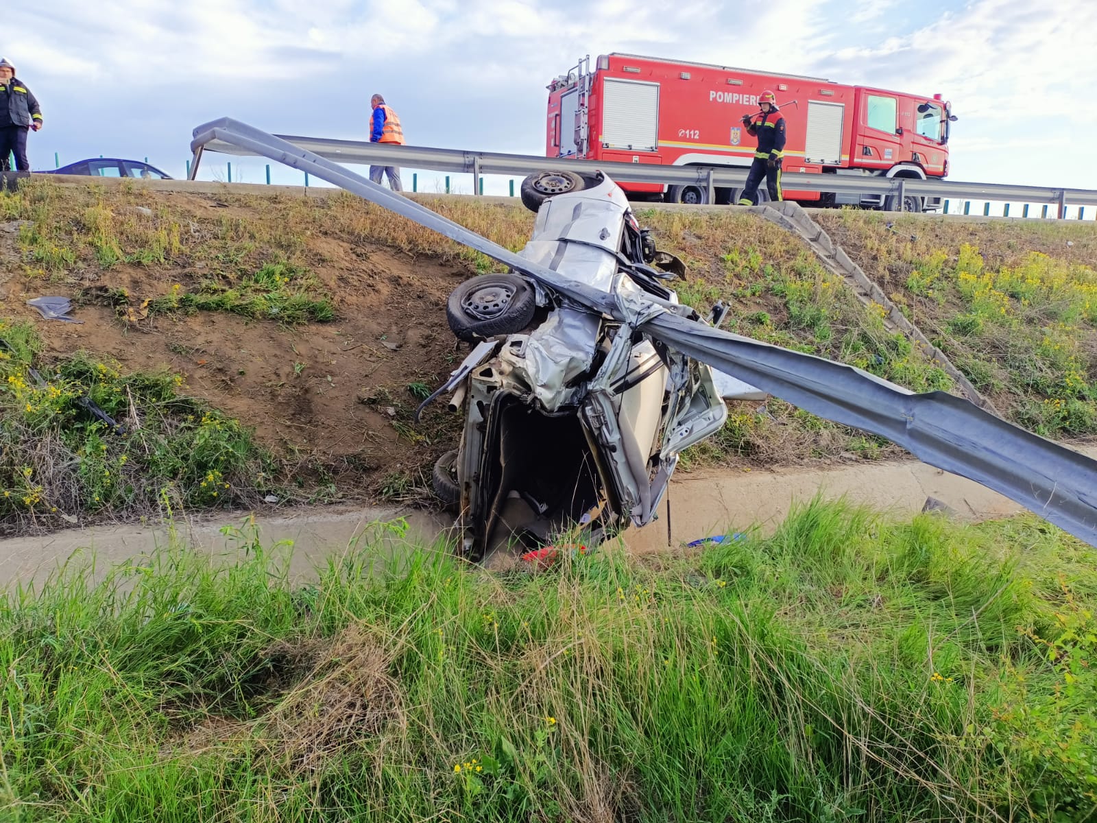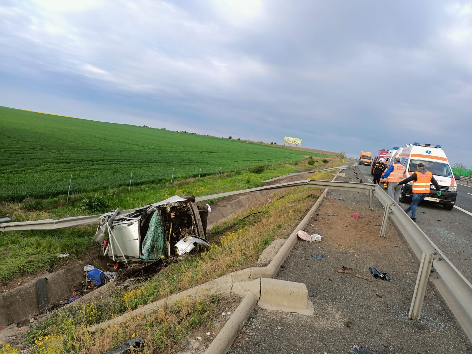 2 din 5 | Accident grav pe Autostrada Soarelui. Mașină cu doi adulţi şi doi copii, răsturnată în șanț