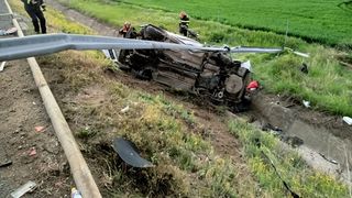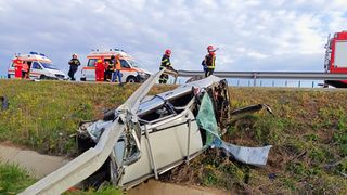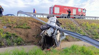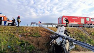 Un accident extrem de violent a avut loc joi dimineața pe Autostrada Soarelui. O mașină în care se aflau şi doi copii a trecut prin gardul de protecție și s-a răsturnat în șanțul de pe marginea drumului.