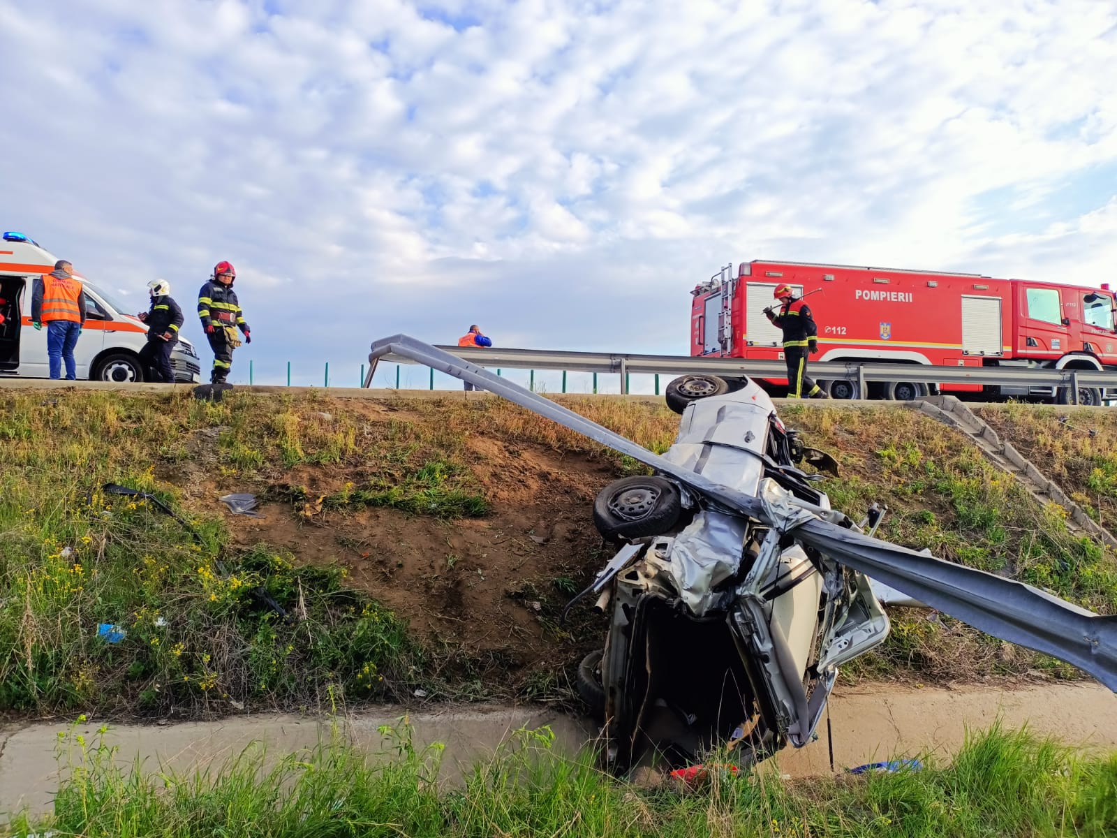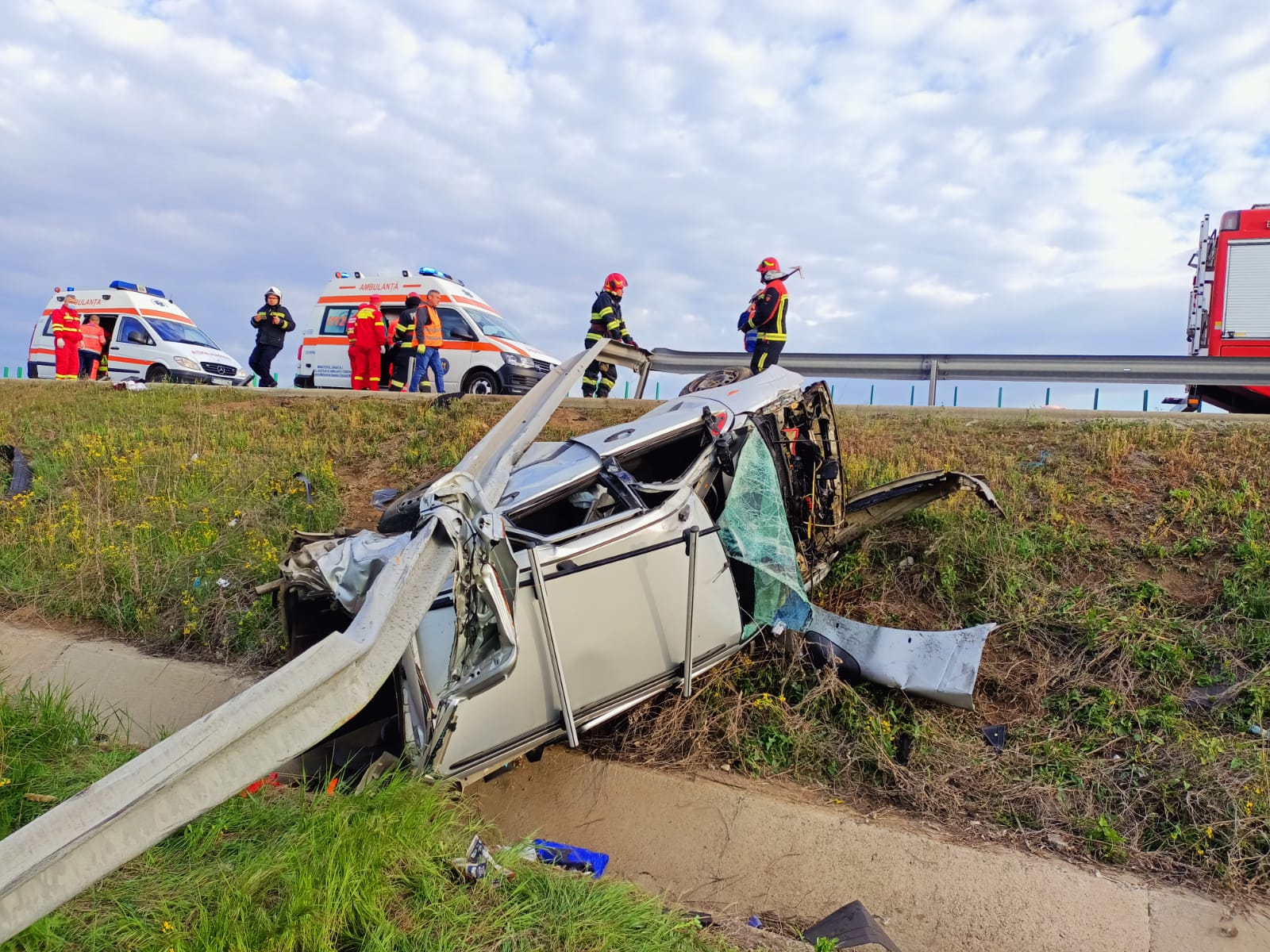 4 din 5 | Accident grav pe Autostrada Soarelui. Mașină cu doi adulţi şi doi copii răsturnată în șanț