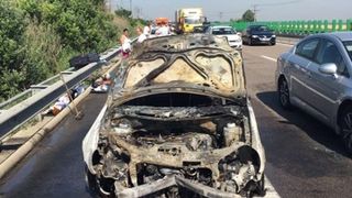 1 din 3 | Accident grav pe Autostrada Soarelui. Doua masini s-au ciocnit, iar una dintre ele a luat foc
