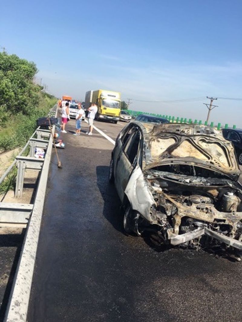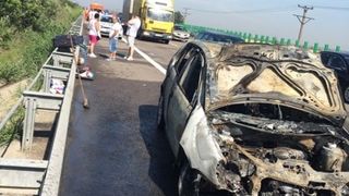 2 din 3 | Accident grav pe Autostrada Soarelui. Doua masini s-au ciocnit, iar una dintre ele a luat foc