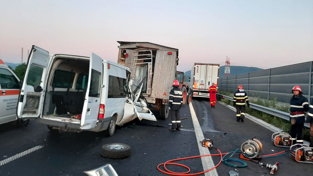 Potrivit ISU Hunedoara, „în urma coliziunii dintre un microbuz și un tractor cu remorcă, o femeie a decedat pe loc iar soțul și cei trei copii, unul de șase ani și doi gemeni de patru ani au fost transportați la UPU Deva, conștienți cu diferite traumatisme”.