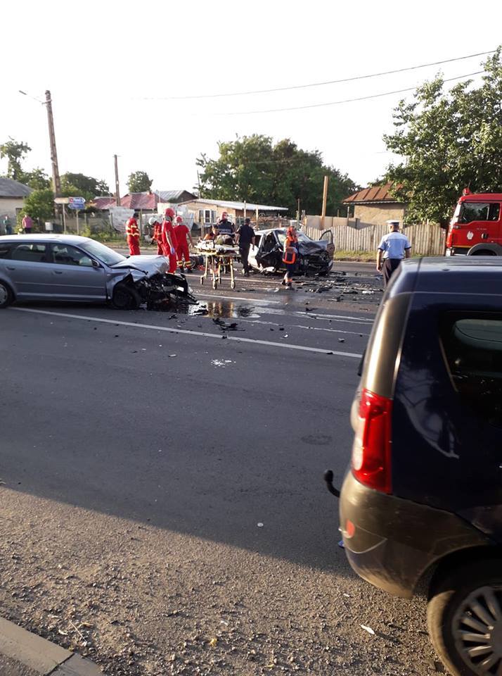 Doua masini s-au ciocnit extrem de violent si patru persoane au suferit rani grave, iar traficul este restrictionat in zona. Se circula pe o singura banda pe fiecare sens, pe langa axul drumului.