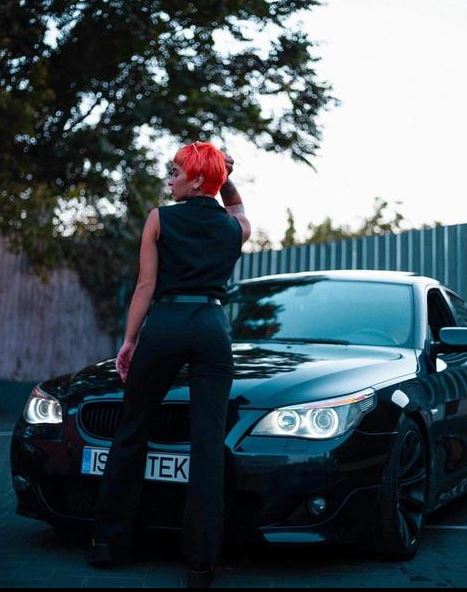 Într-o fotografie, tânăra cântăreață se află pe capota mașinii cu numere de înmatriculare de Suceava, lângă Palatul Culturii. Într-un filmuleț, tânăra deszăpezește sigla BMW a mașinii care valorează câteva zeci de mii de euro.