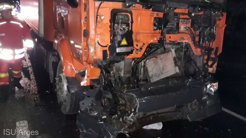 Reprezentanţii Inspectoratului pentru Situaţii de Urgenţă Argeş au anunţat că două persoane au rămas încarcerate în urma coliziunii dintre un autoturism şi un autocamion. La locul accidentului au intervenit două ambulanţe SMURD, una de prim ajutor şi una de terapie intensivă mobilă, precum şi un echipaj de descarcerare.