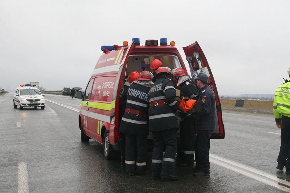 Accident in Dolj. Trei persoane au fost ranite pe DN 6. Una dintre victime, preluata de elicopterul SMURD