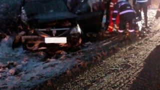 Două persoane au fost rănite într-un accident rutier care a avut loc, sâmbătă dimineaţa, pe şoseaua care leagă Timişoara de Vama Moraviţa, după ce maşina în care se aflau s-a izbit de un TIR, deoarece şoferul nu a adaptat viteza la condiţiile meteo.
