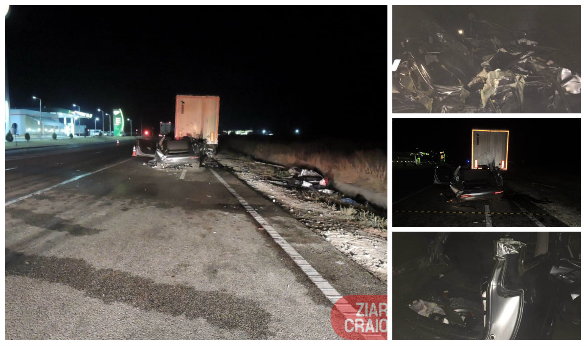 "Duminică, 21 octombrie 2018, în jurul orei 02.00, un bărbat de 47 de ani din Maglavit, în timp conducea un autoturism pe DN 56, în afara localităţii Calafat, către Craiova, din cauza vitezei a pierdut controlul direcţiei şi a intrat sub semiremorca unui TIR staţionat, parţial în afara părţii carosabile. Conducătorul auto şi copiii săi, un băiat de 10 şi o fată de 14 ani, alături de o femeie de 38 ani, şi-au pierdut viaţa. Şoferul autotractorului este un cetăţean bulgar de 50 de ani, care nu a fost rănit", precizează autorităţile.