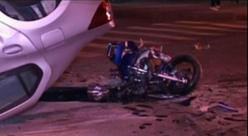 Impactul dintre autoturism si o motocicleta cu doi tineri a fost atat de puternic incat masina s-a rasturnat, iar motociclistul si pasagerul lui au fost aruncati pe asfalt.