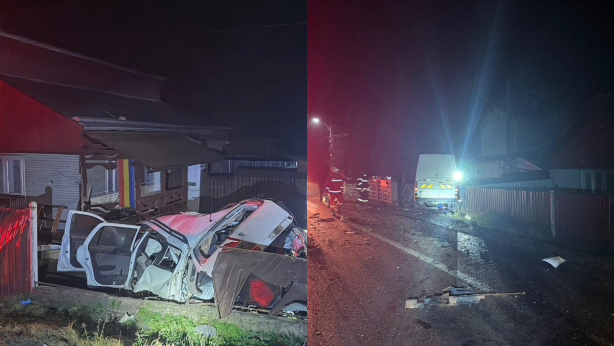 Sâmbăta dimineața, s-a dat alarma, după producerea accidentului, care a distrus și curtea unor oameni, acolo unde s-au oprit ambele autoturisme.