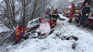 Un bărbat a murit şi altul a fost rănit grav, marţi, după ce maşina în care se aflau a derapat din cauza vitezei şi a drumului acoperit de zăpadă, lovind un copac, pe drumul judeţean dintre localităţile Cornăţel şi Nocrich, din judeţul Sibiu.