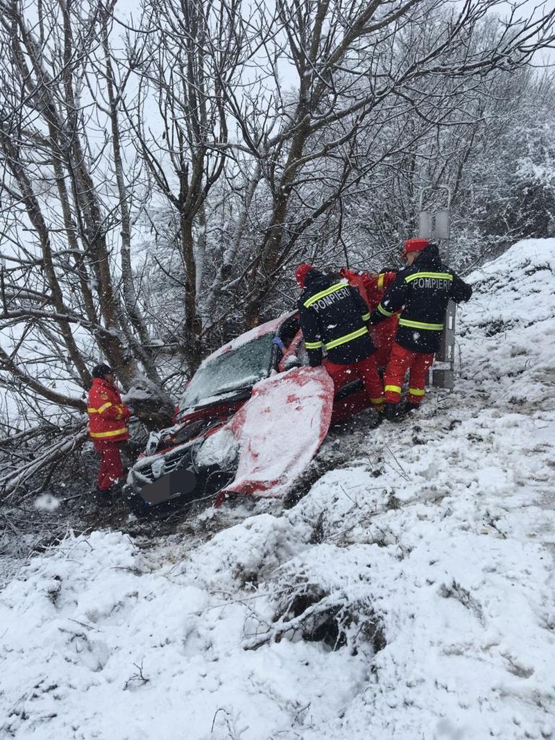 „Un şofer în vârstă de 43 de ani, în timp ce conducea pe direcţia Sibiu- Agnita, a derapat şi a ieşit în afara părţii carosabile izbindu-se de un arbore.