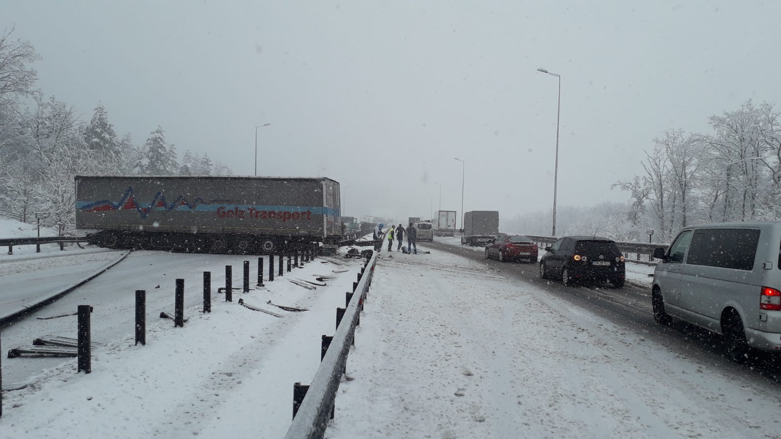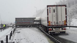 Un sens de circulaţie este blocat după ce două TIR-uri s-au ciocnit.Accidentul de pe A1 a avut loc la km 264 la ieşirea din tunel, spre Sibiu.Unul dintre cele două autotrenuri a derapat şi a traversat zona dintre cele două sensuri de ciruclaţie, rupând parapeţii, după care s-a ciocnit cu un alt autotren care circula din sens opus.