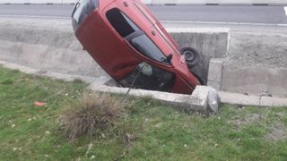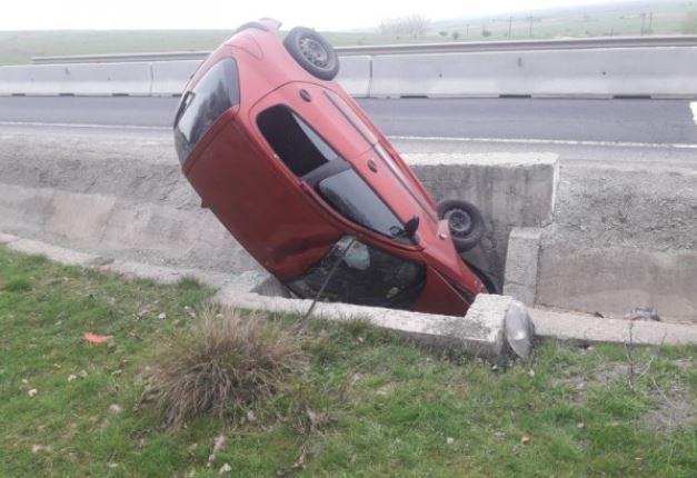 O soferita de 19 ani s-a rasturnat cu masina intr-un sant de pe marginea drumului, vehiculul ramanand imobilizat in pozitie verticala!