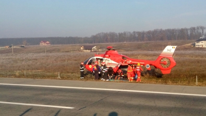 Accident grav pe Autostrada Soarelui! Un autoturism si o autoutilitara s-au ciocnit violent. In urma impactului trei persoane au fost grav ranite.