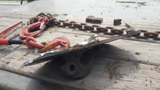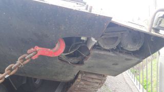 Se asteapta o macara de armata pentru a repune tancul la locul initial.