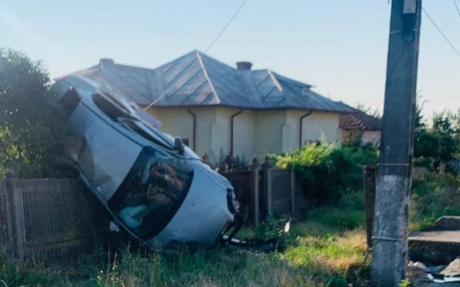 Medicul a pierdut controlul volanului în localitatea doljeană Brădești, a lovit un autoturism care era parcat pe marginea drumului, s-a răsturnat și a rămas suspendat în gardul unei case.