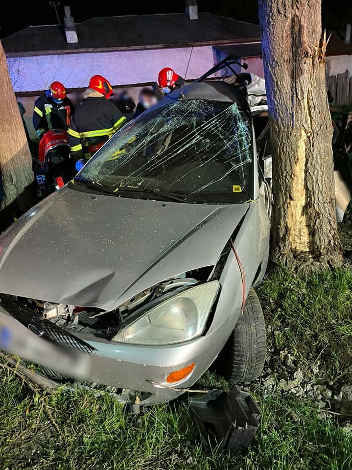 Mașina în care se aflau cei patru tineri a ieșit de pe contrasens și a intrat într-un pom.