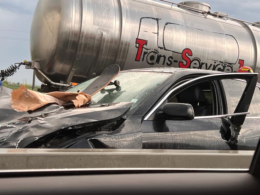 Martorii au declarat că șoferul dubiței nu a păstrat distanța și a lovit din plin o cisternă plină cu ulei.