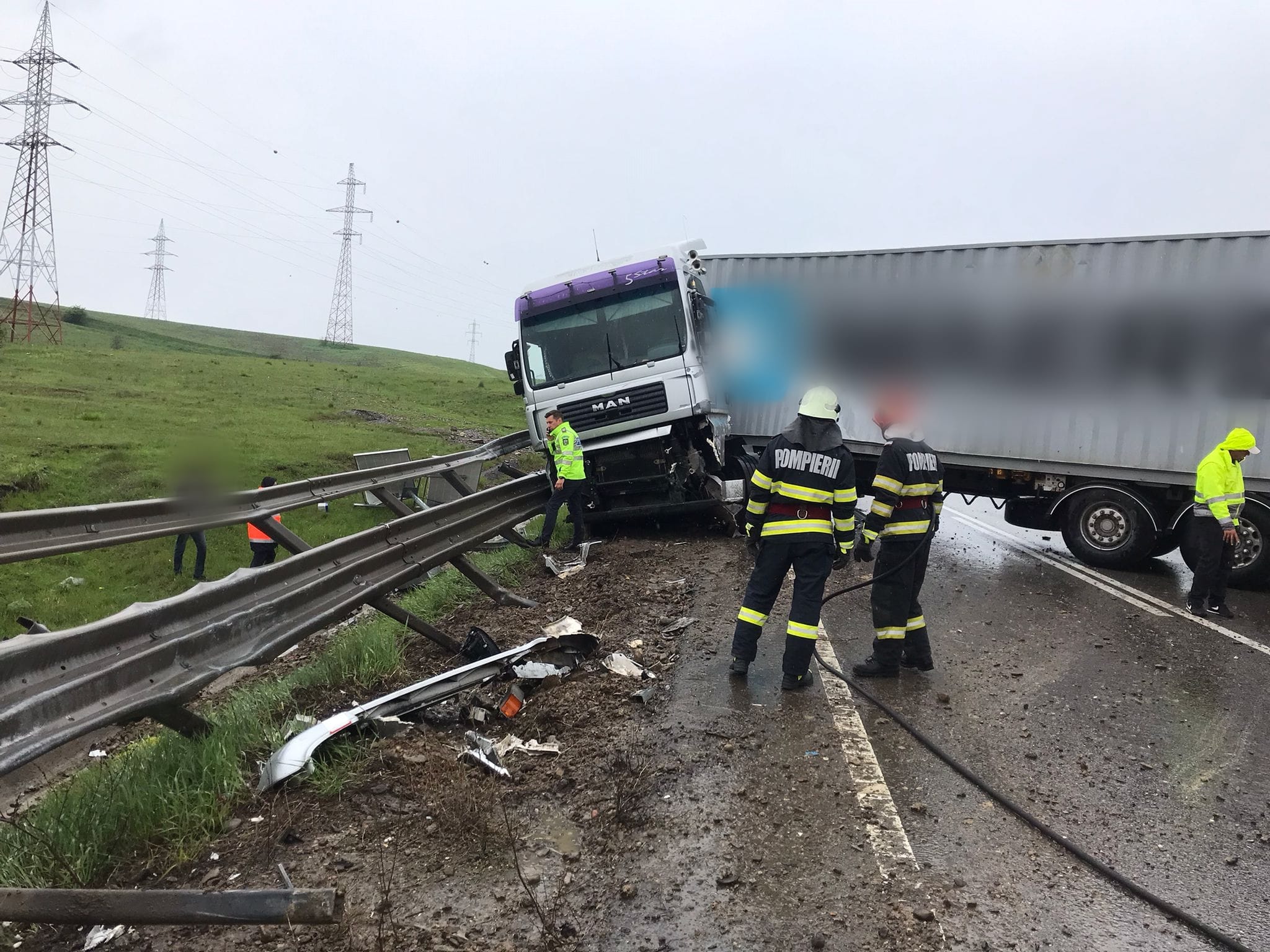 Accident rutier grav pe DN 2. O cisternă cu motorină s-a răsturnat