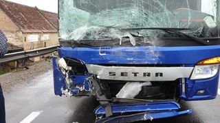 O tânără de 24 de ani aflată în maşină a murit, iar şoferul autocarului a fost rănit. Deocamdată, călătorii din autocar nu au solicitat ajutorul medicilor.