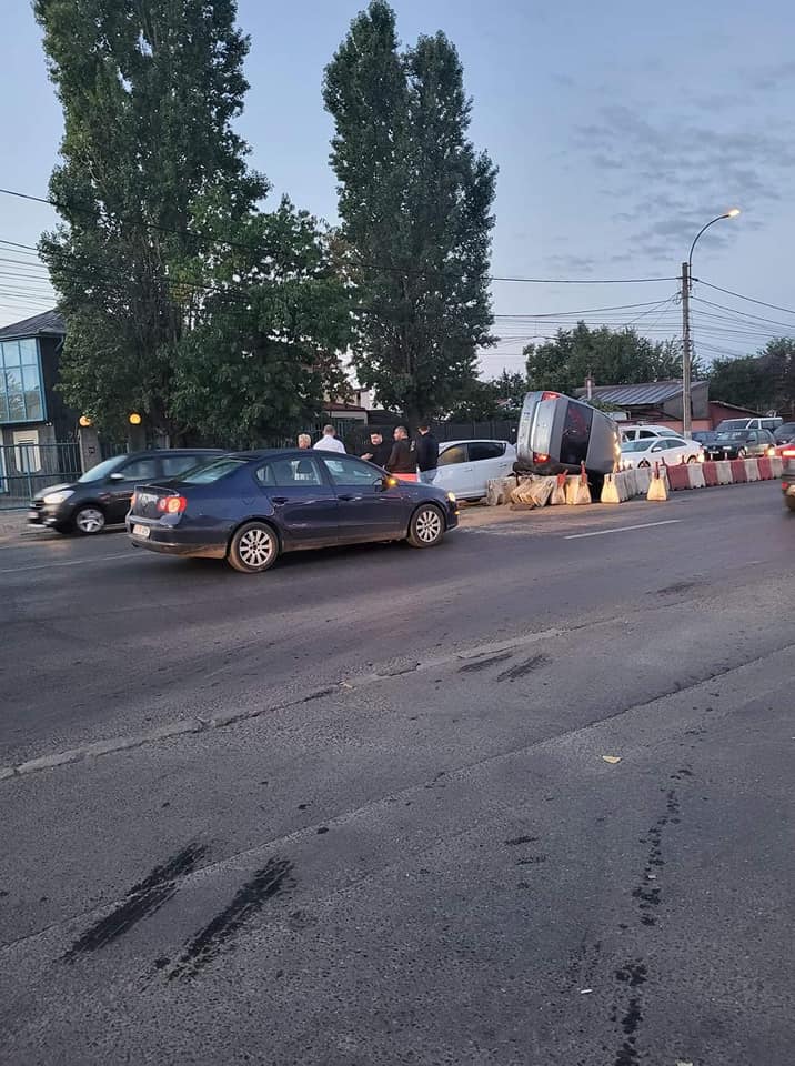 Un accident rutier spectaculos a avut loc în această dimineață în București. O mașină a rămas suspendată în balize după ce s-a ciocnit cu un alt autoturism.