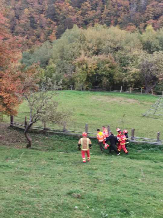 În urma impactului, pasagerul a fost aruncat din mașină într-o râpă, fiind grav rănit.