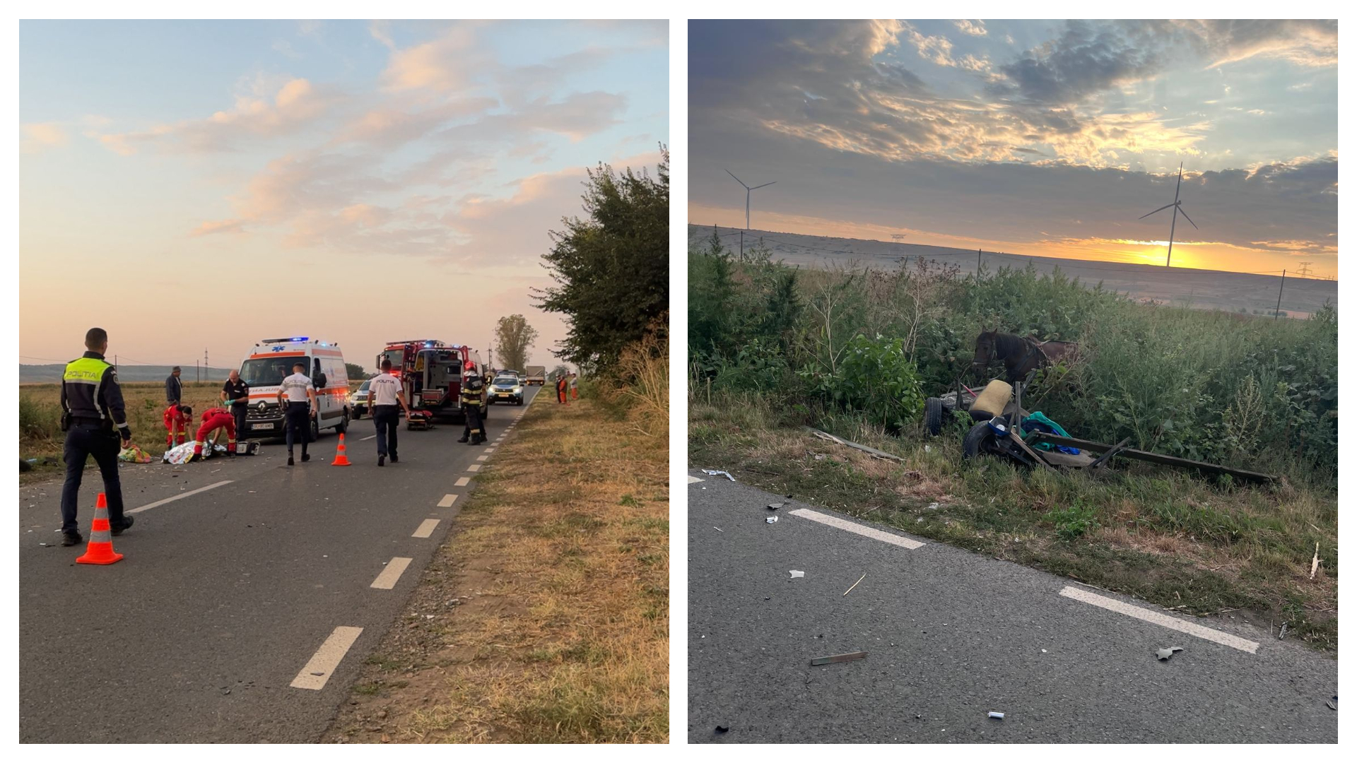 „La data de 9 septembrie 2025, la ora 06:08, polițiștii din cadrul Biroului Rutier Galați au fost sesizați, prin apel la numărul unic 112, cu privire la producerea unui accident rutier, pe DJ 255. Din primele cercetări efectuate la fața locului, aceștia au stabilit că o autospecială de poliție, condusă de un tânăr în vârstă de 20 de ani, din localitatea Matca, județul Galați, care se deplasa dinspre localitatea Pechea, către Rediu, ar fi intrat în coliziune cu un atelaj hipo, care avea aceeași direcție de deplasare. În urma impactului, a rezultat rănirea a 3 persoane (doi bărbați în vârstă de 23 și 73 de ani, și o femeie de 47 de ani) și decesul unei femei, de 71 de ani, toți din localitatea Pechea, aflați în atelajul hipo. Rezultatele testării celor doi conducători de vehicule, cu privire la consumul de alcool, au fost negative. Cercetările sunt continuate, în vederea stabilirii circumstanțelor exacte în care s-a produs accidentul.”, se arată în comunicatul IPJ Galați.