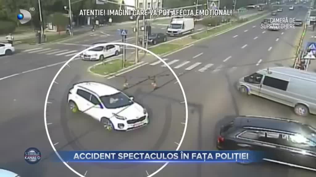 Stirea "Accident spectaculos în fața Poliției" difuzata in cadrul Stirilor KANAL D din 12 10 2022