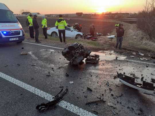 „În urma evenimentului, o femeie (conştientă şi cooperantă) a rămas încarcerată în autoturism. După extragerea acesteia, a fost preluată de către echipajul de prim ajutor şi va fi transportată la spital", a transmis sursa citată.