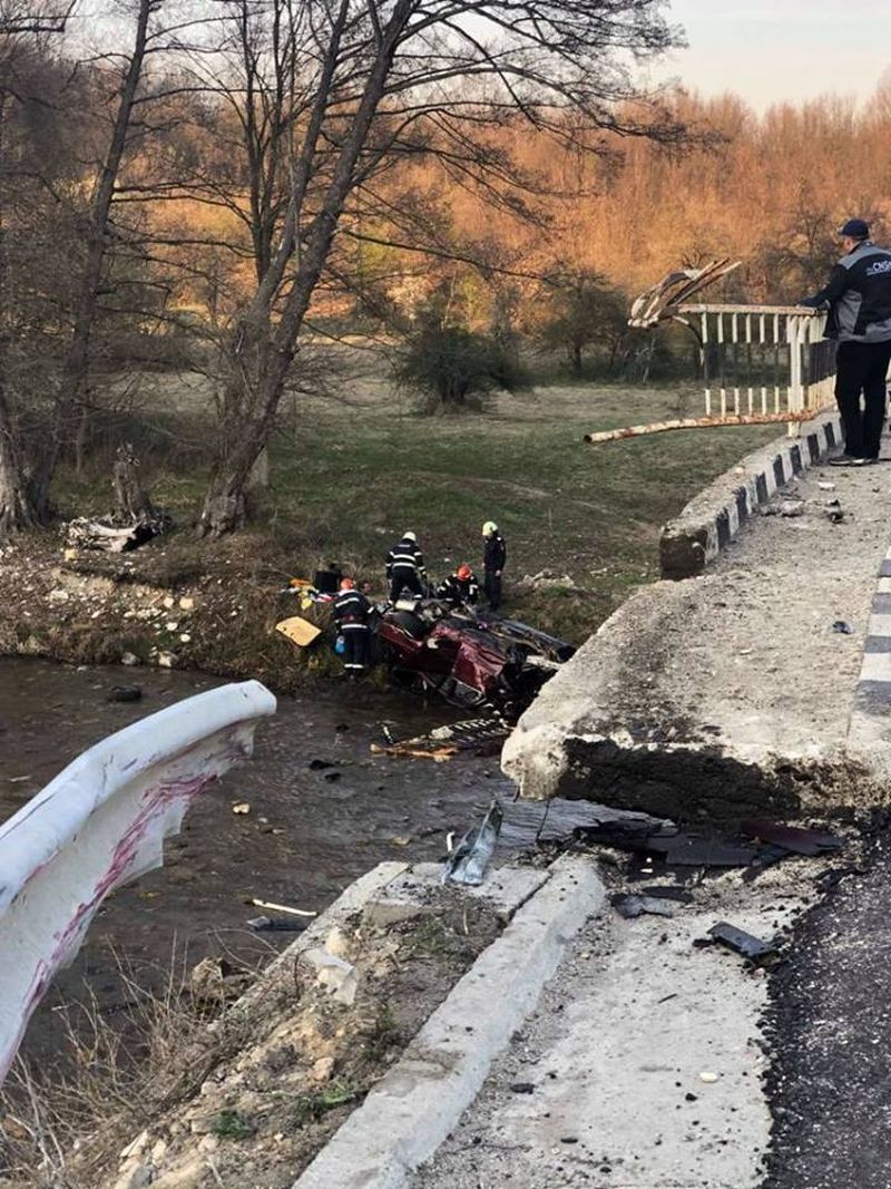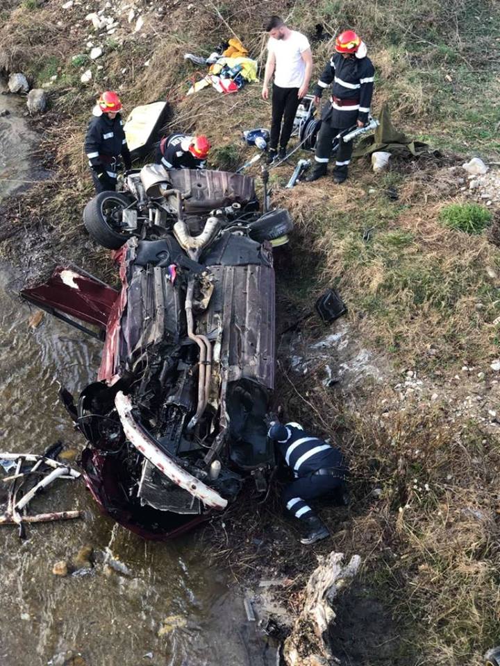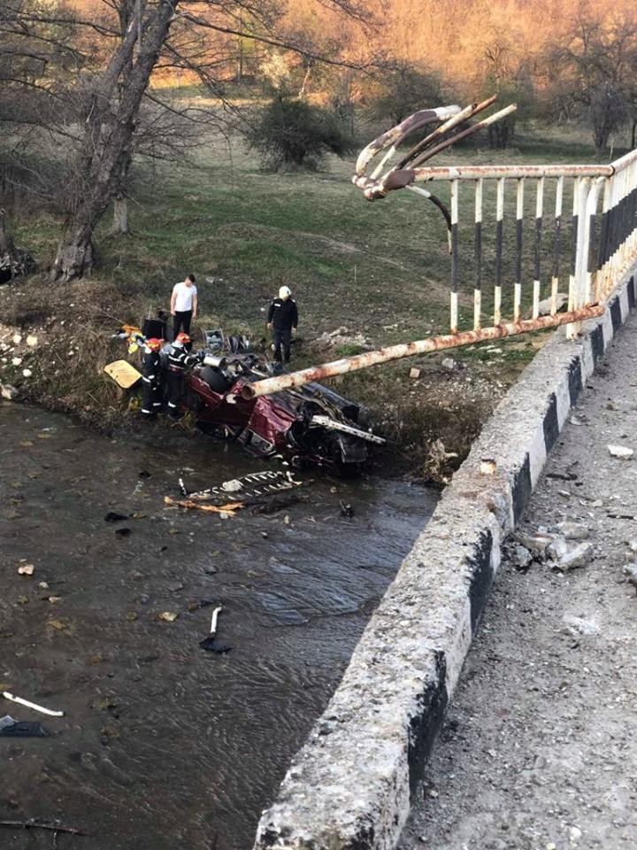 Doua persoane au fost transportate la UPU Orsova dupa ce masina in care se aflau a cazut de pe pod in raul Eselnita din Mehedinti.