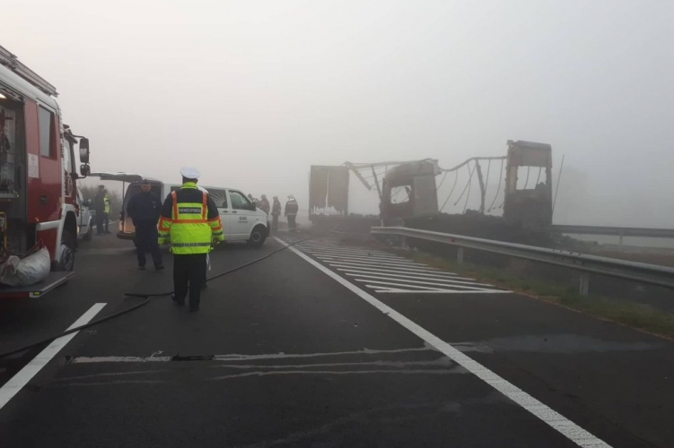 Șapte persoane au murit într-un teribil accident de circulație petrecut în Ungaria, la aproximativ 70 de km de granița cu România. Un TIR a intrat în parapetul autostrăzii M5 și a lovit două autoturisme care circulau pe sensul opus de mers. Un incendiu a izbucnit în urma coliziunii, iar pasagerii celor două mașini nu au mai putut fi salvați.
