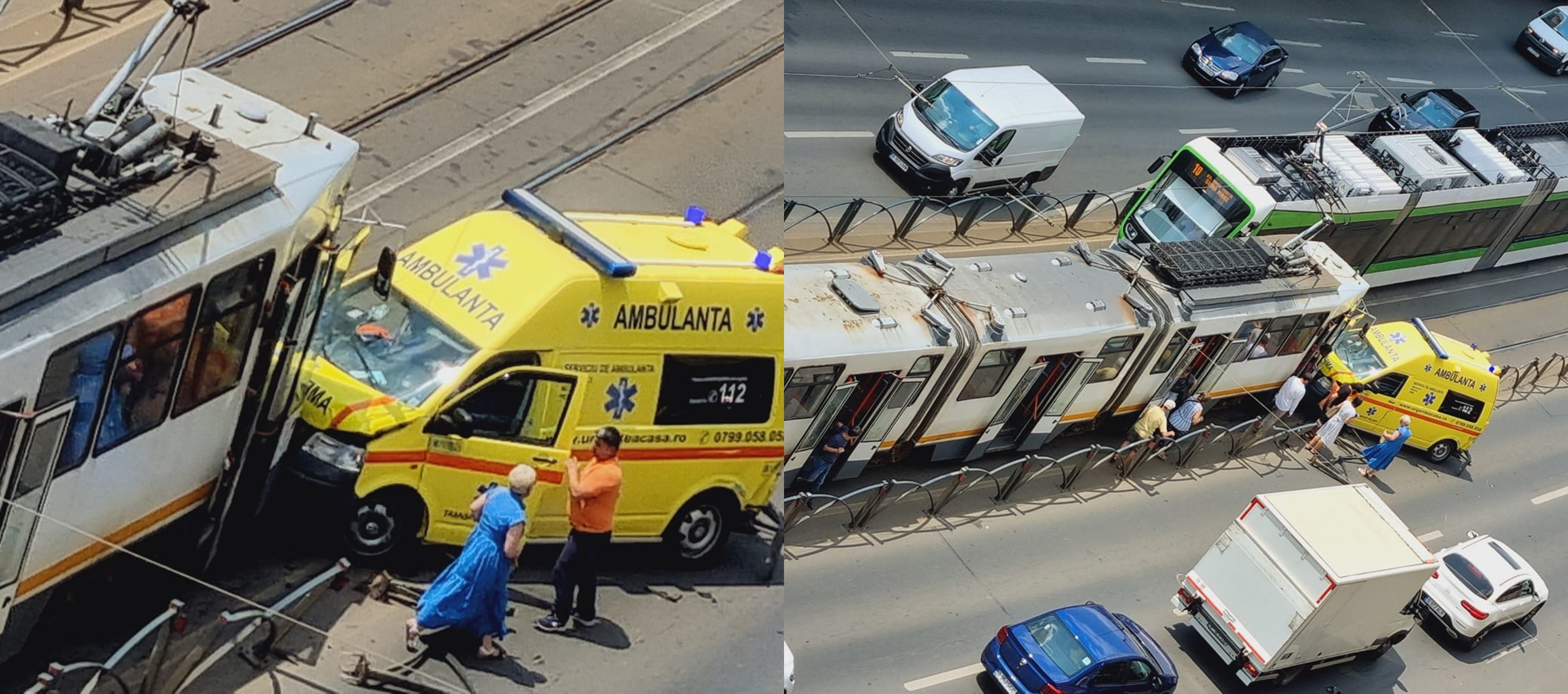„Pe Șoseaua Ştefan cel Mare, în zona Dr.Grozovici, pe sensul Pasaj Victoria, un tramvai al liniei 1 s-a tamponat frontal cu o ambulanţă”, a transmis STB.