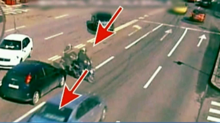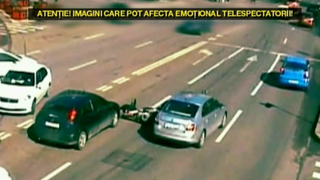 2 din 3 | Accident violent filmat la Braila. Un motociclist este izbit in plin de o masina - Care este starea lui de sanatate