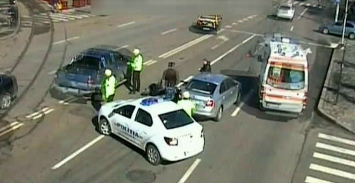 Accident violent filmat la Braila. Un motociclist este izbit in plin de o masina - Care este starea lui de sanatate