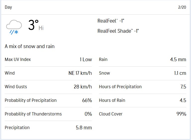 Singura zi din luna februarie 2025 în care meteorologii Accuweather prognozează ninsoare este 20 februarie. În această zi, Capitala va avea parte și de lapoviță, cu o temperatură maximă de 3 grade Celsius și o minimă de 1 grad.