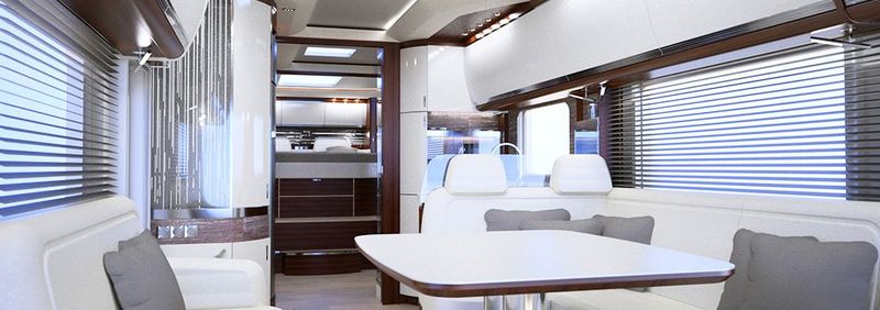 Interiorul spectaculos este completat de puterea motorului care ajunge la 300 km/h. Insa acest nivel de confort vine cu un pret. Rulota costa 378.000 de lire, aproape de doua ori mai mult decat o locuinta in Marea Britanie.
