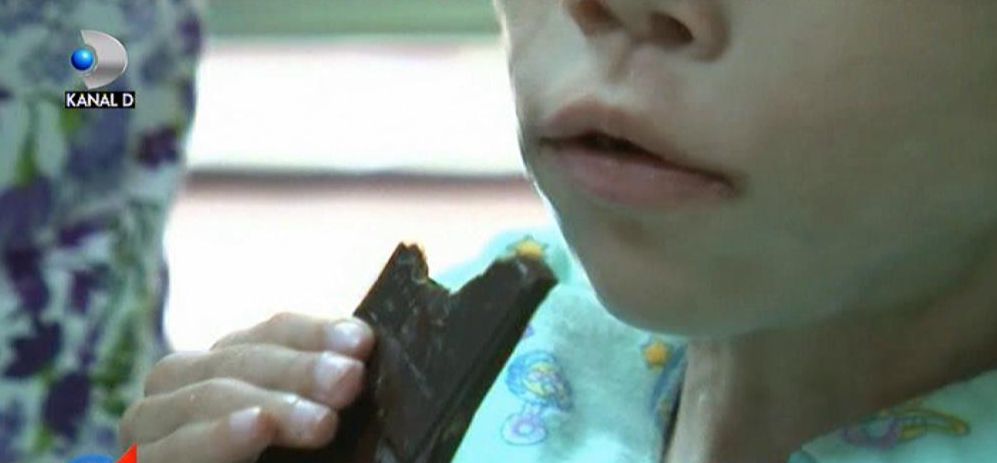 Meniul unui copilas internat la Iasi e departe de cel al unui bolnav normal din Romania: micutul in varsta de 5 ani e hranit de medicul care incearca sa-l puna pe picioare doar cu ciocolata. Din cauza bolilor de care bietul baietel sufera, e singurul aliment pe care il poate inghiti.