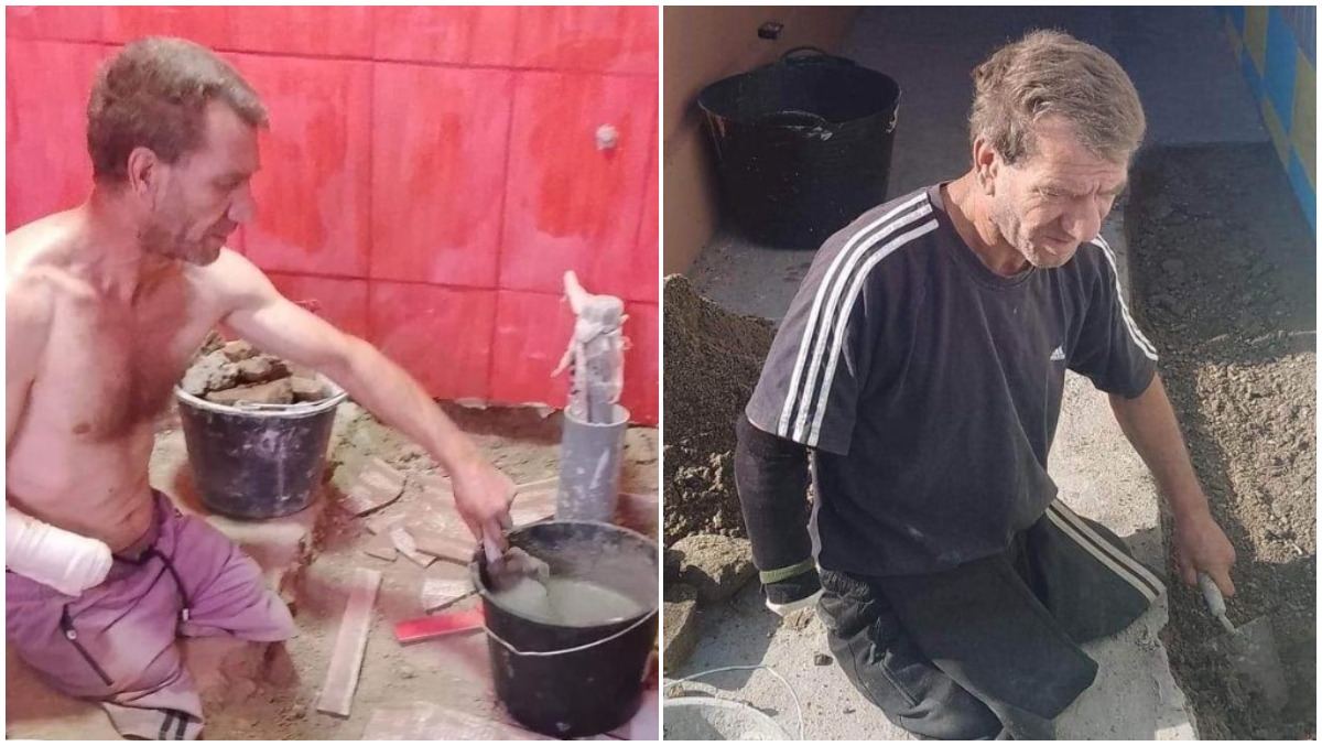 Acest bărbat nu are un picior și o mână, dar muncește zilnic pentru a-și termina casa: „Niciodată nu am stat cu mâna întinsă. Meseria este brățară de aur”