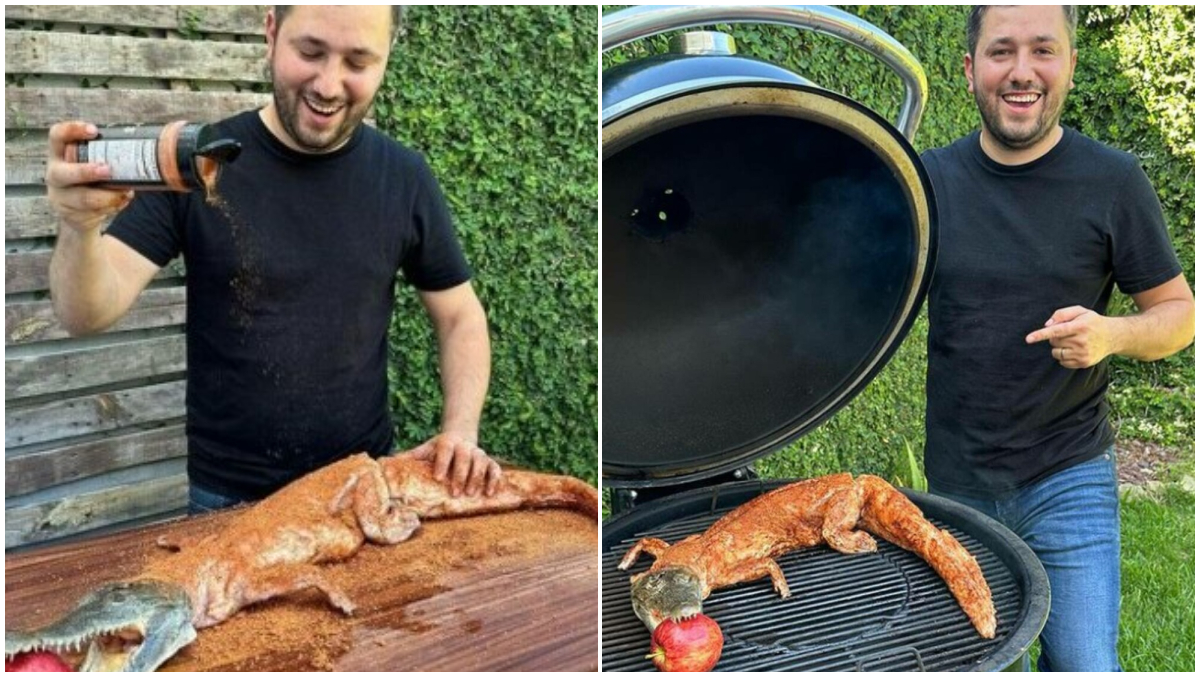 Oamenii din mediul online s-au revoltat, specificând că această specie de crocodil, gătită de el pe grătar, este pe cale de dispariție.