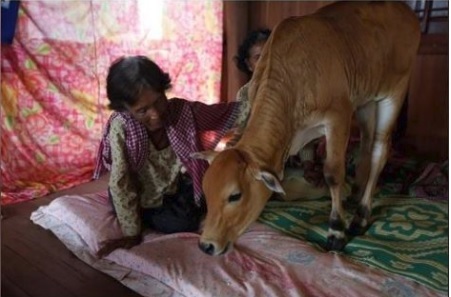 Khim Hang este o batrana in varsta de 74 de ani din Cambodgia care crede cu tarie faptul ca sotul ei, care a murit in urma cu un an, s-a reincarnat intr-un vitel.