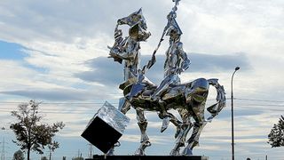 2 din 4 | Acesta este cel mai original monument din Romania! Statuia "Omagiu" din Buzau are 10 metri inaltime, este facuta din inox si este dedicata memoriei unui artist plastic