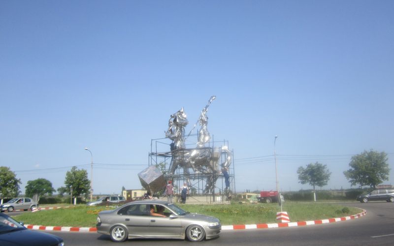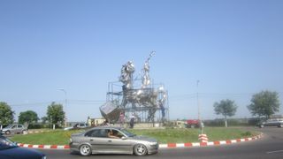 3 din 4 | Acesta este cel mai original monument din Romania! Statuia "Omagiu" din Buzau are 10 metri inaltime, este facuta din inox si este dedicata memoriei unui artist plastic