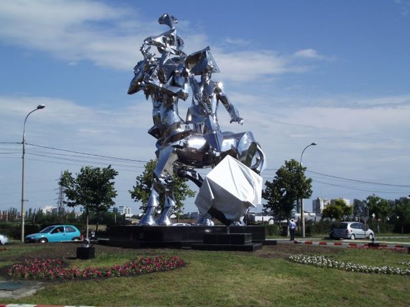 4 din 4 | Acesta este cel mai original monument din Romania! Statuia "Omagiu" din Buzau are 10 metri inaltime, este facuta din inox si este dedicata memoriei unui artist plastic