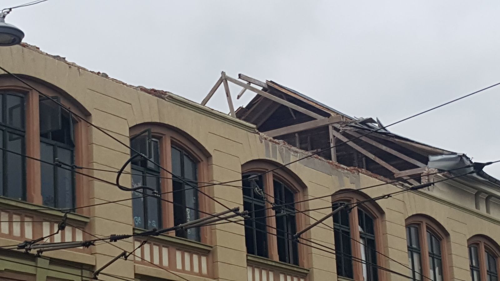 Acoperisul Fabricii de Bere "a zburat" si a cazut pe bulevardul George Cosbuc