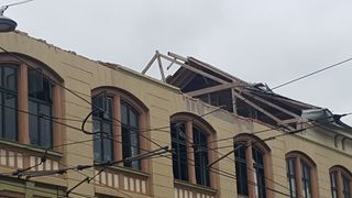 4 din 5 | Acoperisul Fabricii de Bere "a zburat" si a cazut pe bulevardul George Cosbuc