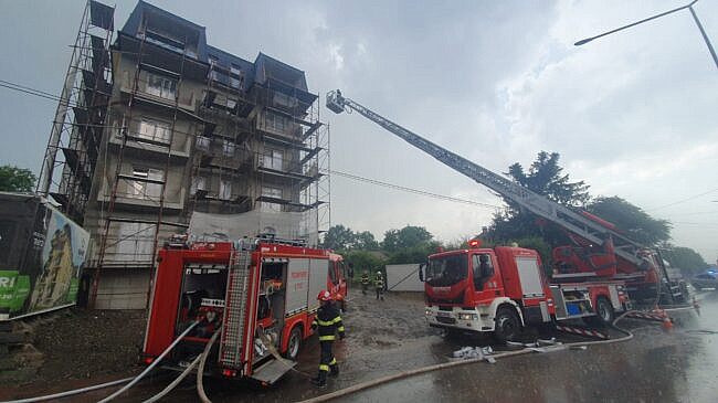 "Este vorba despre acoperişul unui bloc de locuinţe, care nu este dat în folosinţă. Spre locul intervenţiei au fost trimise şapte autospeciale de stingere, trei autoscări mecanice şi o ambulanţă SMURD", au precizat oficialii ISU Suceava.