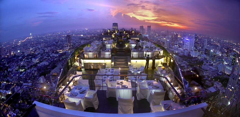 Impresionantul bar Verigo amenajat pe acoperisul hotelului Banyan Tree din Bangkok ofera turistilor o panorama de 360 de gradea asupra capitalei Thailandei.
