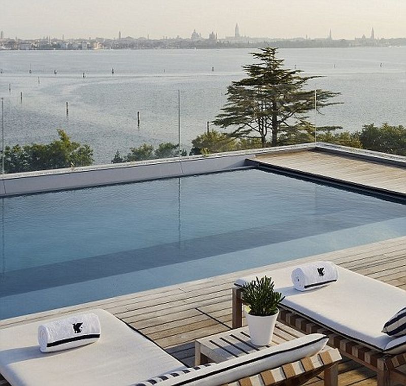 La cateva munute de Piata St Mark din Venetia se afla hotelul JW Marriott Venice Resort&Spa, al carui acoperis gazduieste un restaurant, un bar si o piscina cu o priveliste minunata asupra lagunei venetiene.